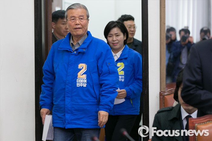 (서울=포커스뉴스) 김종인(왼쪽) 더불어민주당 비대위 대표가 6일 오전 서울 여의도 국회 당대표회의실에서 광주경제살리기 특별기자회견을 위해 입장하고 있다.