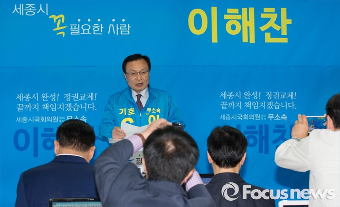 (세종=포커스뉴스) 이해찬 무소속 후보가 6일 오전 세종시 도담동 선거사무소에서 문화·예술·스포츠에 관한 4차 공약발표 기자회견에서 세종마을 만들기 일환으로 문화오아시스 프로젝트를 발표하고 있다.