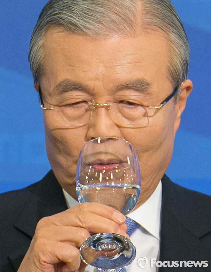 (서울=포커스뉴스) 김종인 더불어민주당 비대위 대표 겸 선대위원장이 6일 오후 서울 종로구 세종문화회관에서 한국방송기자클럽 초청 토론회에 앞서 물을 마시고 있다.