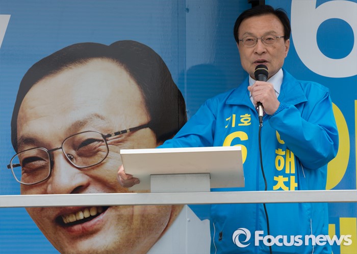 (세종=포커스뉴스) 이해찬 무소속 후보가 6일 오후 세종시 도담동 중앙타운 네거리에서 지지를 호소하고 있다.