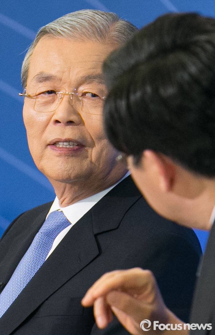 (서울=포커스뉴스) 김종인(왼쪽) 더불어민주당 비대위 대표 겸 선대위원장이 6일 오후 서울 종로구 세종문화회관에서 한국방송기자클럽 초청 토론회에 앞서 패널과 대화하고 있다.