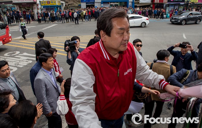 (당진=포커스뉴스) 6일 오후 충남 당진 구 버스터미널 사거리에서 김무성 새누리당 대표가 김동완 당진시 후보 지원유세를 위해 유세차에 오르고 있다.