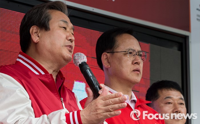 (아산=포커스뉴스) 6일 오후 충남 아산 충무로에서 이명수 새누리당 아산시갑 후보 지원유세에 나선 김무성 대표가 유권자들에게 지지를 호소하고 있다.