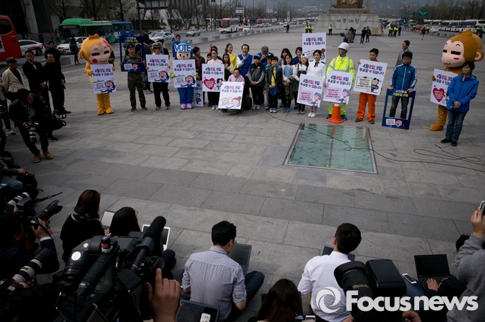 (서울=포커스뉴스) 김종인 더불어민주당 비대위 대표 겸 선대위원장이 6일 오후 서울 광화문광장에서 정세균 종로구 후보, 비례대표 후보, 창원 봉강초등학교 학생들과 20대 총선 사전투표 캠페인을 하고 있다.