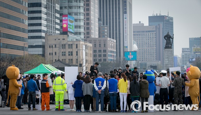 (서울=포커스뉴스) 김종인 더불어민주당 비대위 대표 겸 선대위원장이 6일 오후 서울 광화문광장에서 정세균 종로구 후보, 비례대표 후보, 창원 봉강초등학교 학생들과 20대 총선 사전투표 캠페인을 하고 있다.