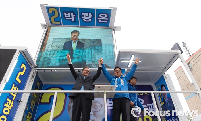 | △ 만세하는 문재인과 박광온 |