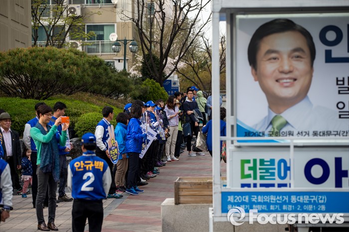 (서울=포커스뉴스) 6일 오후 서울 동대문구 휘경동 일대에서 안규백 더불어민주당 동대문구갑 후보 선거운동원들이 선거운동을 하고 있다.