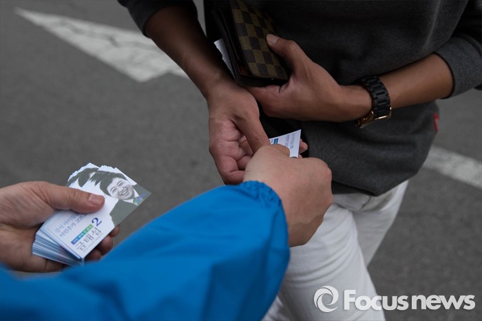 (서울=포커스뉴스) 20대 총선을 일주일 앞둔 6일 오후 서울 강서구 화곡8동 주민센터 일대에서 금태섭 더불어민주당 강서구갑 후보가 거리유세를 하고 있다.