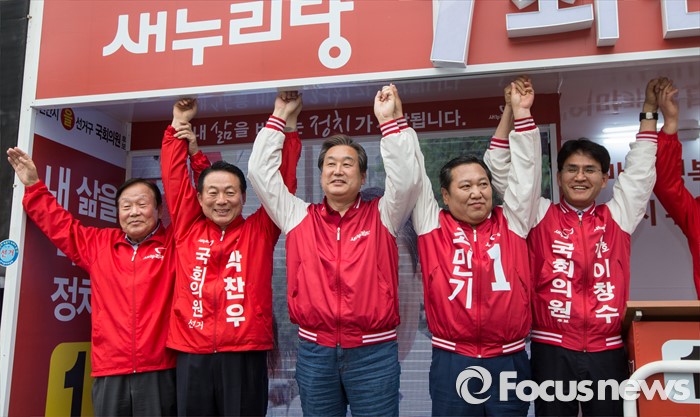 (서울/천안=포커스뉴스) 김무성 새누리당 대표가 5~6일 이틀간 진행된 충청·호남 지역 마지막 유세지로 천안을 찾아 충청권 표심 굳히기에 집중했다.