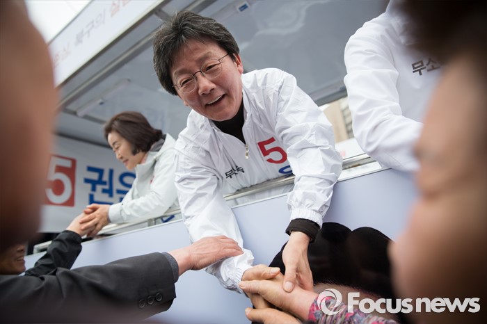(대구=포커스뉴스) 유승민 무소속 동구을 후보가 6일 오후 대구광역시 북구 칠성시장 앞에서 권은희, 류성걸 무소속 후보와 함께 선거 유세를 하고 있다.