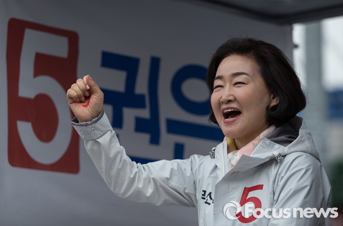 (대구=포커스뉴스) 권은희 무소속 북구갑 후보가 6일 오후 대구광역시 북구 칠성시장 앞에서 열린 유승민, 권은희, 류성걸 무소속 후보 합동 유세에서 선거 유세를 하고 있다.