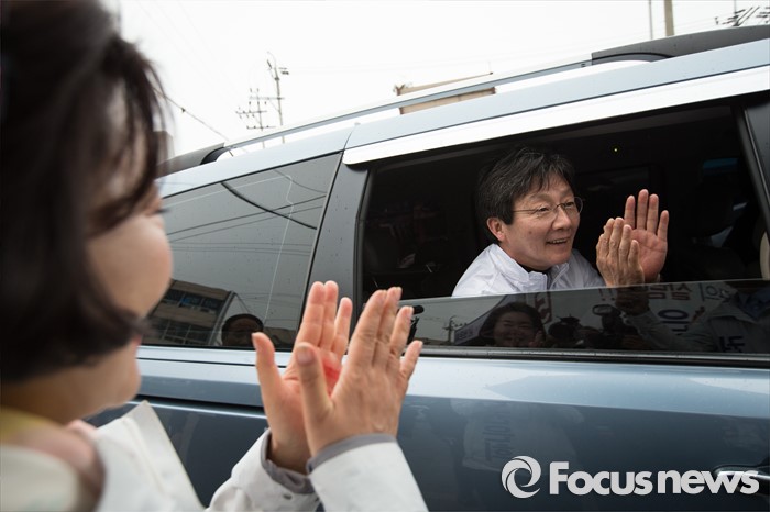 (대구=포커스뉴스) 유승민 무소속 동구을 후보가 6일 오후 대구광역시 북구 칠성시장 앞에서 선거 유세를 마친 후 다른 장소로 이동하며 지지자들에게 인사하고 있다.