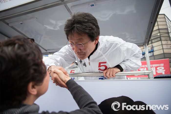 (대구=포커스뉴스) 유승민 무소속 동구을 후보가 6일 오후 대구광역시 북구 칠성시장 앞에서 선거 유세를 하고 있다.