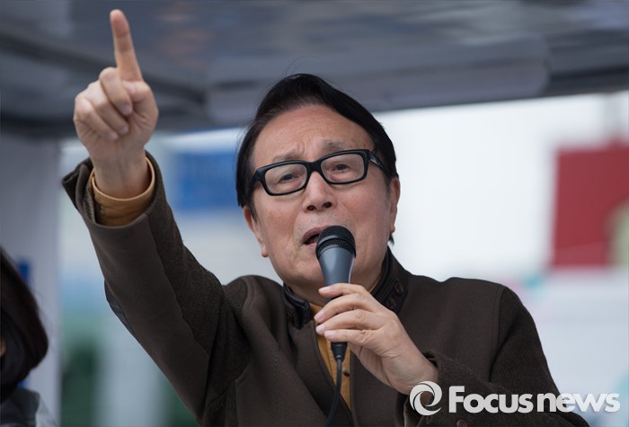 (대구=포커스뉴스) 박찬종 전 의원이 6일 오후 대구광역시 북구 칠성시장 앞에서 권은희, 류성걸 무소속 후보와 함께 선거 유세를 하고 있다.