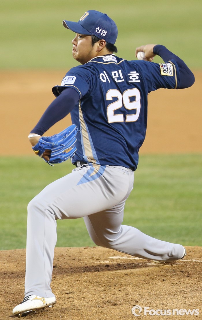 (서울=포커스뉴스) 6일 서울 잠실구장에서 열린 2016 프로야구 NC-두산 경기에서 1회말 NC 선발투수 이민호가 투구하고 있다.