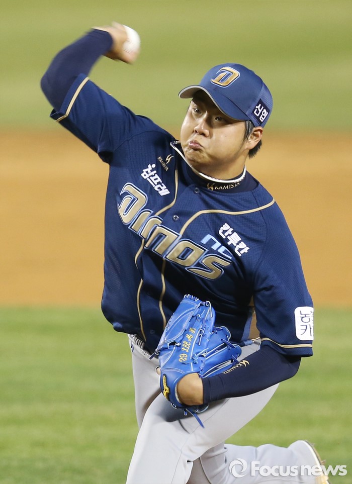 (서울=포커스뉴스) 6일 서울 잠실구장에서 열린 2016 프로야구 NC-두산 경기에서 1회말 NC 선발투수 이민호가 투구하고 있다.