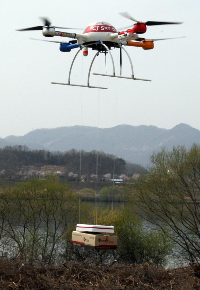 (서울=포커스뉴스) CJ대한통운이 세계 최초 드론 관련 신기술과 장치를 자체 개발해내면서 드론 배송 현실화에 한걸음 더 다가섰다.