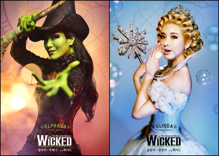 오는 5월18일부터 6월 19일까지 5주간 대구 계명 아트센터에서, 7월12일부터 8월28일까지 서울 예술의전당 오페라극장에서 공연된다.'같은 배역으로 다시 돌아온 배우 중 가장 기대되는 배우' 설문조사에서 뮤지컬 '위키드'의 박혜나, 정선아가 1,2위를 차지했다. 사진은 뮤지컬 '위키드' 캐릭터 포스터. <사진제공=클립서비스>