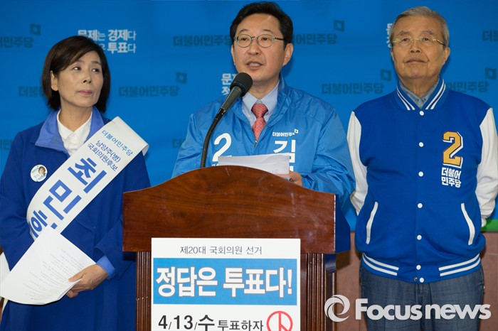 (남양주=포커스뉴스) 7일 오전 경기도 남양주시청에서 김한정 더불어민주당 남양주을 후보가 공동정책 공약을 발표하고 있다.