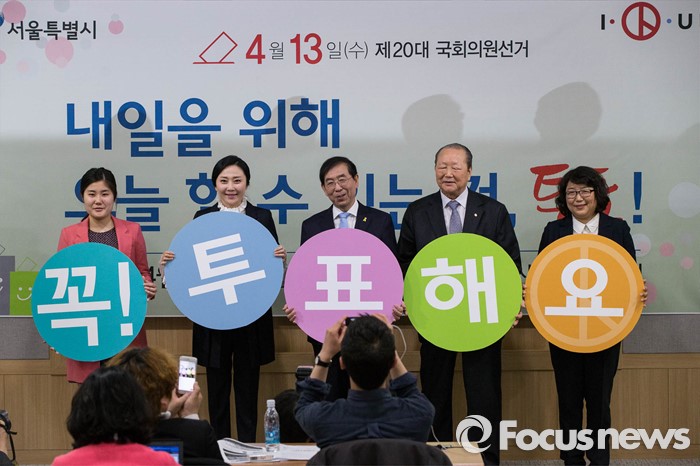 (서울=포커스뉴스) 20대 총선을 6일 앞둔 7일 오전 박원순 서울시장이 서울시청 브리핑룸에서 제20대 국회의원선거 '공명선거 및 투표참여' 호소문을 발표하고 있다.