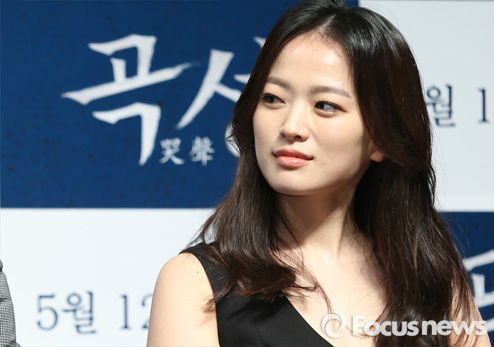 (서울=포커스뉴스) 7일 오전 서울 강남구 압구정 CGV에서 열린 영화 '곡성' 제작보고회에 참석한 배우 천우희가 진행자에게 질문을 받고 있다.