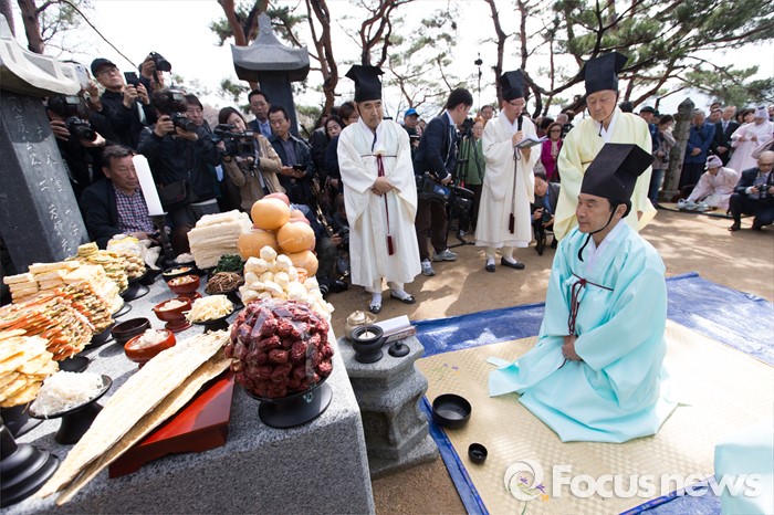 (남양주=포커스뉴스) 7일 오전 경기 남양주 다산유적지에서 손학규 전 더불어민주당 상임고문이 초헌관으로 참석해 다산 정약용 선생 180주기 묘제·헌다례를 하고 있다.