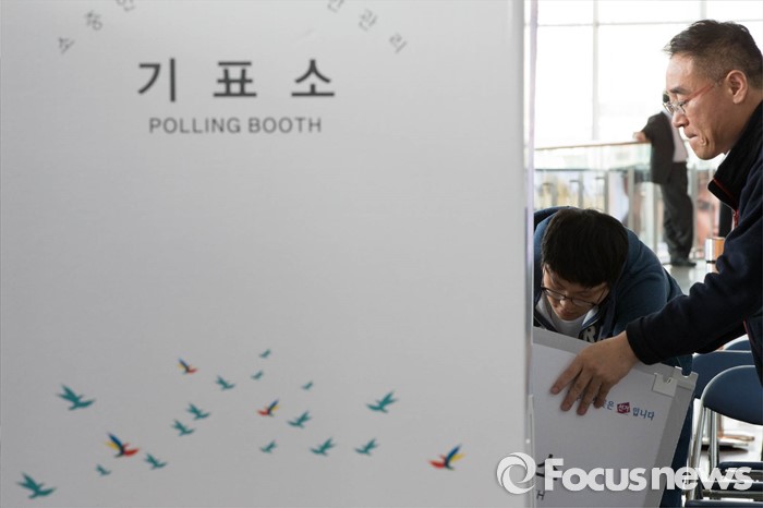 (서울=포커스뉴스) 20대 총선을 6일 앞둔 7일 오전 서울 용산구 서울역 3층 맞이방에 사전투표소가 설치되고 있다.