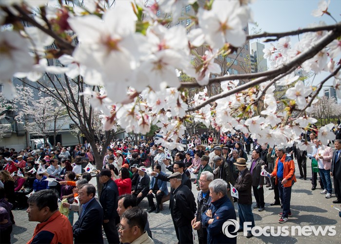 (서울=포커스뉴스) 7일 오후 서울 마포구 늘장공원에서 열린 안대희 새누리당 마포갑 후보 집중유세장에 시민들이 가득 모여 있다.
