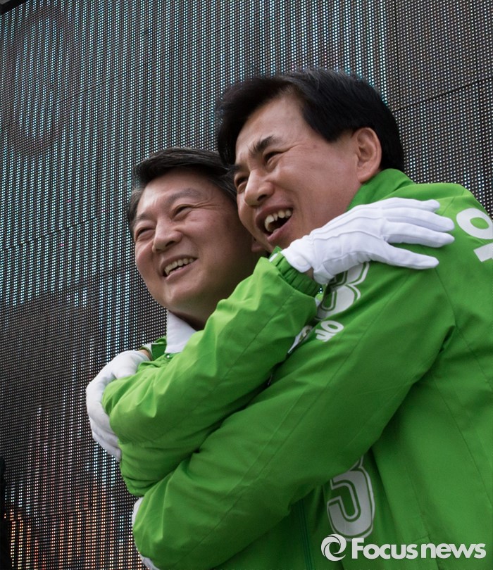 (하남=포커스뉴스) 7일 오후 경기 하남 신장시장 앞에서 안철수 국민의당 상임공동대표가 유형욱 국민의당 하남시 후보 지원유세를 하고 있다.