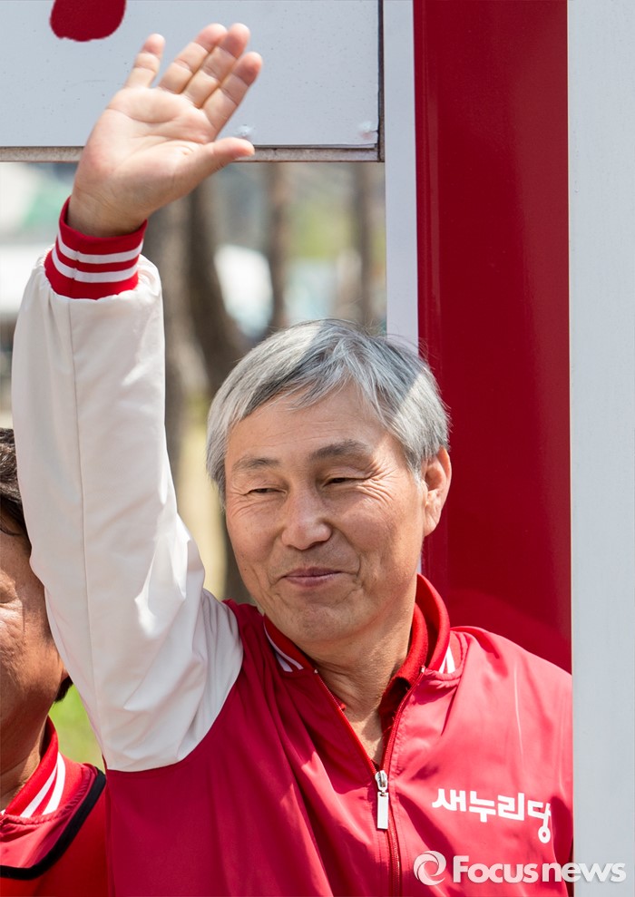 (서울=포커스뉴스) 7일 오후 서울 마포구 늘장공원에서 열린 안대희 새누리당 마포갑 후보 집중유세에 참석한 조훈현 비례대표가 시민들에게 인사하고 있다.