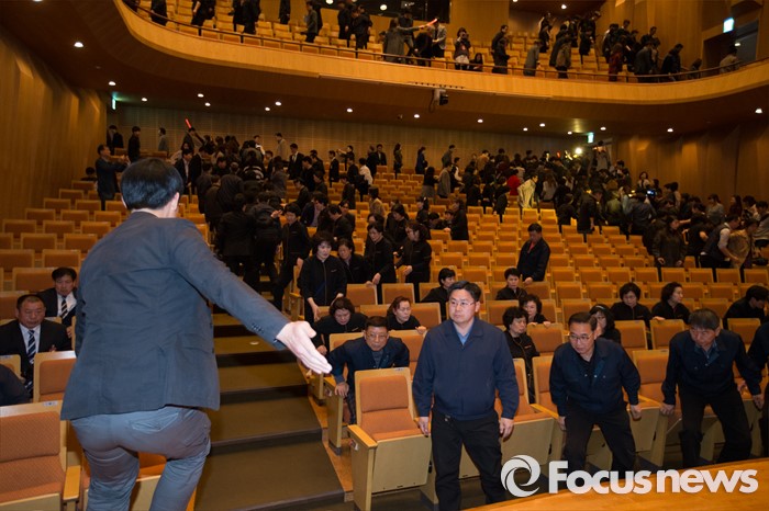 (서울=포커스뉴스) 7일 오후 서울 서초구 예술의전당 음악당에서 열린 유관 기관 합동 대테러훈련에서 직원들이 관객들을 대피시키고 있다. 이번 훈련은 공연 도중 폭발 의심물체가 발견된 상황을 설정해 훈련을 진행했다.
