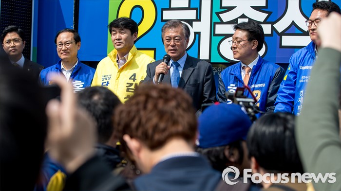 (인천=포커스뉴스) 문재인 더불어민주당 전 대표가 7일 오후 인천광역시 지하철1호선 주안역 남광장에서 열린 인천 지역 후보 합동유세에서 유권자들에게 소중한 한 표를 호소 하고 있다.
