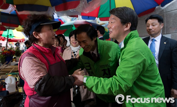 (서울=포커스뉴스) 7일 오후 서울 송파구 마천시장에서 안철수 국민의당 상임공동대표가 차성환 국민의당 송파구병 후보 지원유세를 하고 있다.