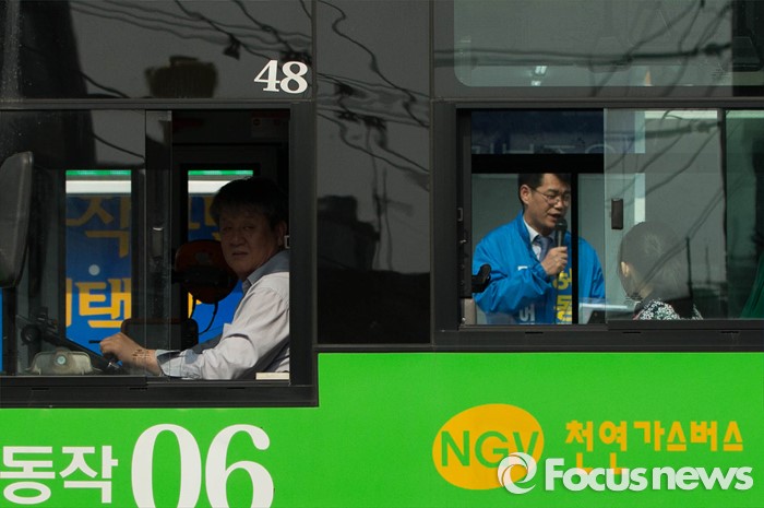 (서울=포커스뉴스) 20대 총선을 6일 앞둔 7일 오후 서울 동작구 남성역 골목시장 인근에서 허동준 더불어민주당 동작구을 후보가 선거유세를 하고 있다.
