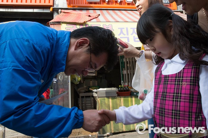 (서울=포커스뉴스) 20대 총선을 6일 앞둔 7일 오후 서울 동작구 남성역 골목시장에서 허동준 더불어민주당 동작구을 후보가 선거운동을 하고 있다.