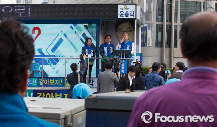 (충주=포커스뉴스) 김종민 더불어민주당 대표가 7일 오후 충북 충주 중앙로에서 윤홍락 후보의 지지를 호소하고 있다.