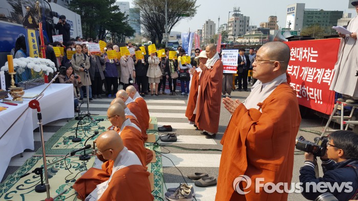 환수위는 "옛 봉은사 경내지인 한전부지의 개발계획을 강행하려는 서울시와 현대자동차를 규탄한다"고 주장했다.