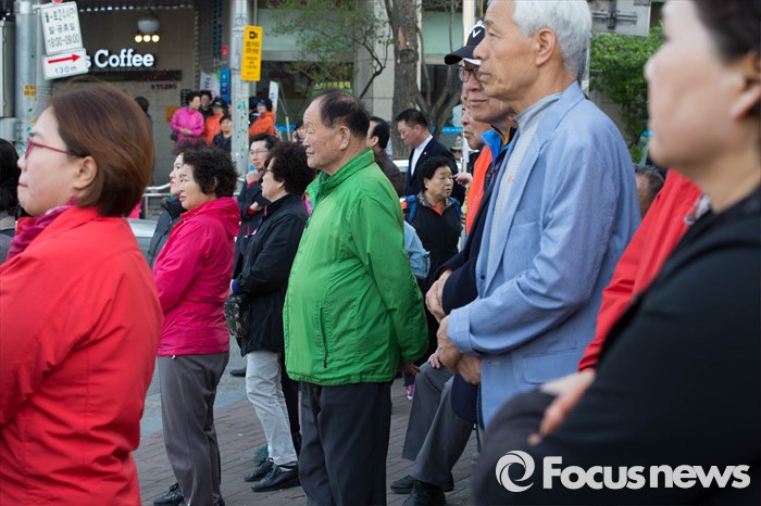 | △ 나경원 후보 유세 지켜보는 유권자들 |