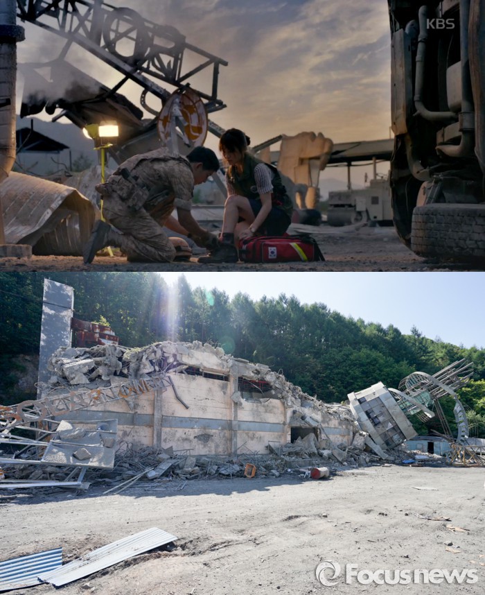 '태양의 후예'는 사전제작 드라마다. 지난해 여름 촬영이 진행됐다. 현재 촬영지에는 탄광촌 당시 쓰였던 건물과 석탄을 캐고 날랐던 레일만이 남아 있었다. 촬영을 위해 지어진 막사와 발전소 타워 건물은 사라지고 없었다. 터만 남아있는 상황이다.