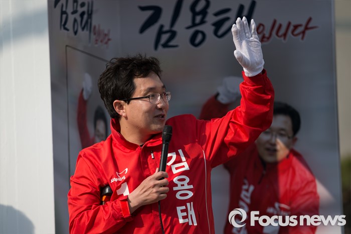 (서울=포커스뉴스) 김용태 새누리당 양천구을 후보가 7일 오후 서울 양천구 신월동 일대에서 선거운동을 하고 있다.