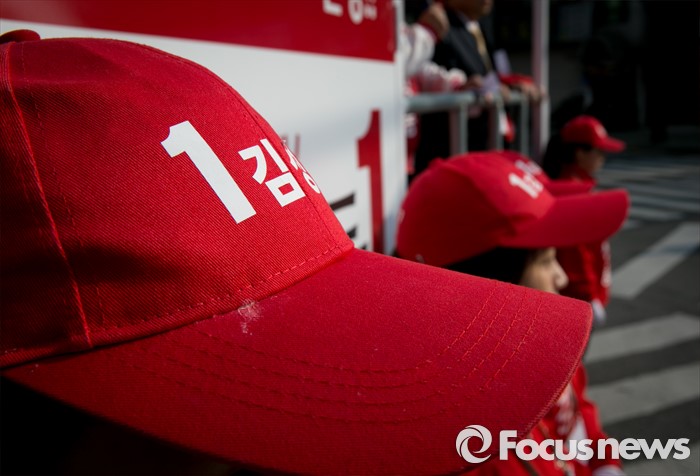 (서울=포커스뉴스) 20대 총선에 출마하는 김성동 새누리당 서울 마포을 후보의 선거운동원들이 7일 오후 서울 경성고등학교 앞 사거리에서 선거유세를 하고 있다.