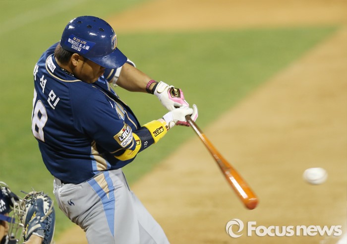 (서울=포커스뉴스) 7일 서울 잠실구장에서 열린 2016 프로야구 NC-두산 경기 3회 1사 1루에서 NC 박석민이 중경수앞 안타를 치고 있다.