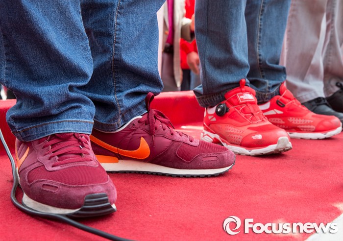 김무성 대표는 7일 서울 지역 유세를 나서면서 청바지에 빨간색 운동화를 신었다. 이날 김 대표가 지원한 서울 마포갑에 출마한 안대희 후보 역시 한 등산브랜드의 새빨간 운동화를 신고 있었다.