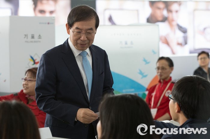 (서울=포커스뉴스) 4.13총선을 닷새 앞둔 8일 오전 서울 용산구 서울역에 설치된 남영동 사전투표소에서박원순 서울시장이 투표를 하고 있다.