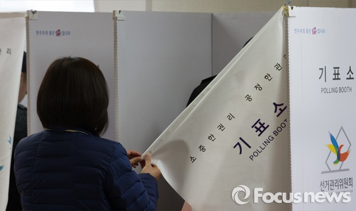 (인천=포커스뉴스) 제20대 국회의원 선거 사전투표 시작일인 8일 오전 인천 연수구 송도1동 주민센터에서 한 관계자가 기표소를 재정비 하고 있다.