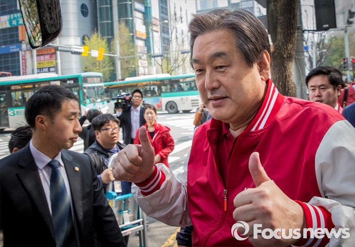 (안양=포커스뉴스) 8일 오전 경기 안양시 범계역 인근에서 심재철 새누리당 안양동을 후보 지원유세에 나선 김무성 대표가 유권자들의 지지를 호소하고 있다.