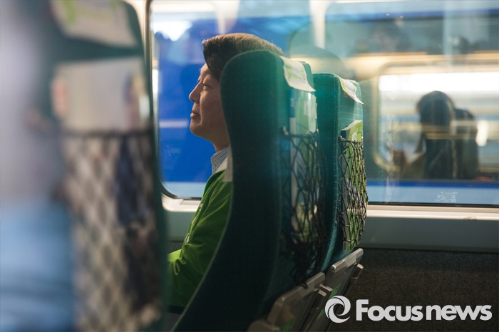 (서울=포커스뉴스) 4.13총선 사전투표 첫째날인 8일 오전 서울 용산구 서울역에서 안철수 국민의당 상임공동대표가 투표격려 캠페인을 위해 계단을 오르고 있다.