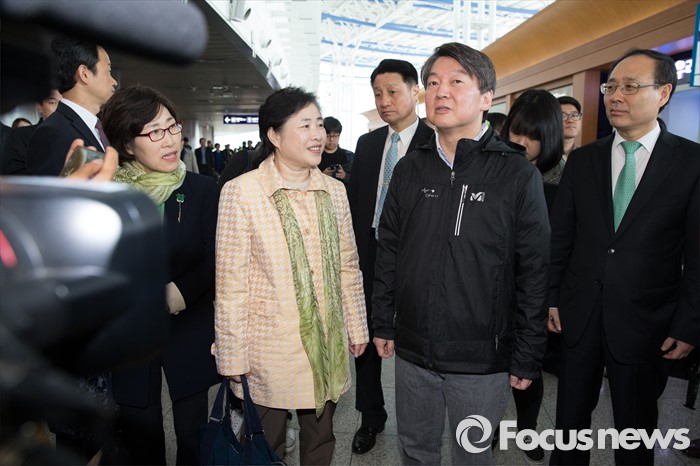 (서울=포커스뉴스) 4.13총선 사전투표 첫째날인 8일 오전 서울 용산구 서울역에서 안철수 국민의당 상임공동대표가 투표격려 캠페인을 하고 있다.