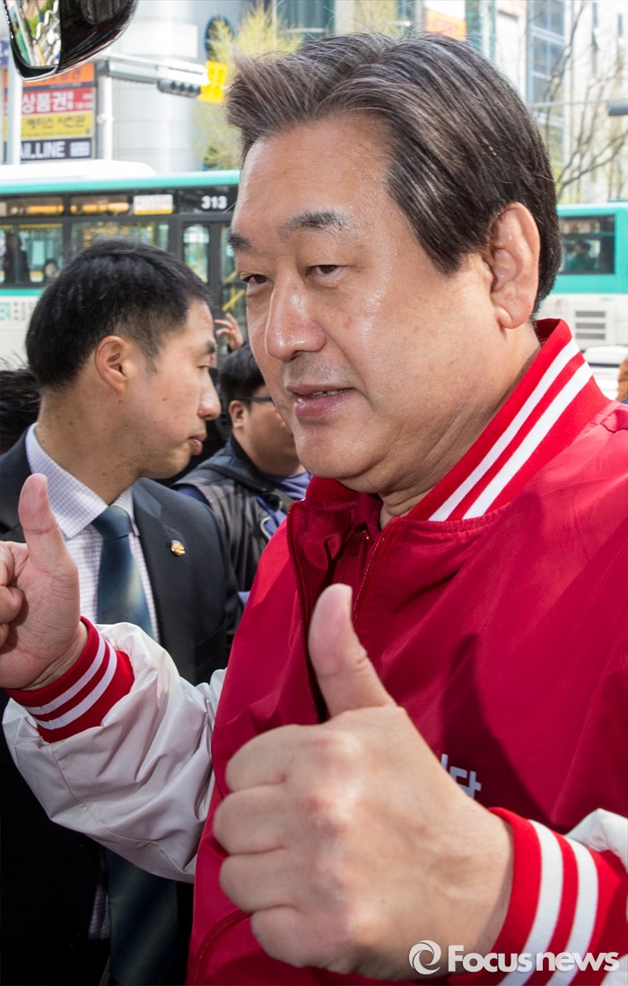 (안양=포커스뉴스) 8일 오전 경기 안양시 범계역 인근에서 심재철 새누리당 안양동을 후보 지원유세에 나선 김무성 대표가 유권자들의 지지를 호소하고 있다.