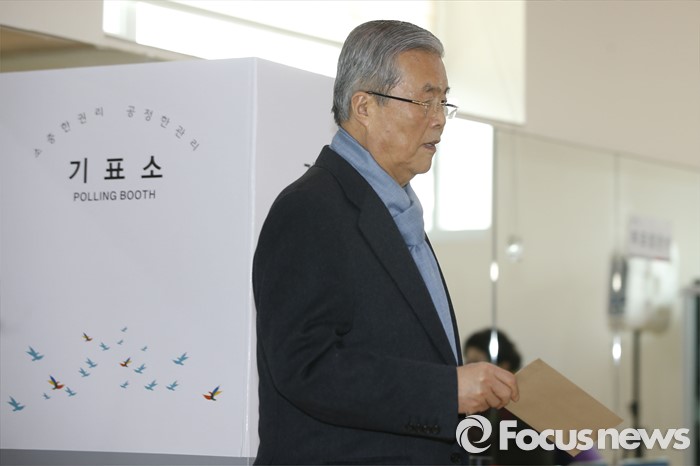 (인천=포커스뉴스) 김종인 더불어민주당 비대위 대표 겸 선대위원장이 8일 오전 인천 연수구 동춘3동주민센터에서 사전투표를 하고 있다.